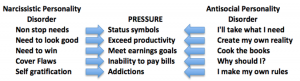 In a very real way, the activating pressure step of the fraud triangle is often preceded by narcissistic “needs.” These needs when activated turn into action through the intrapersonal sanctions of Antisocial Personality Disorder. The following graphic illustrates the foundation of non-stop needs and the activating entitlement of guilt-free rule breaking.